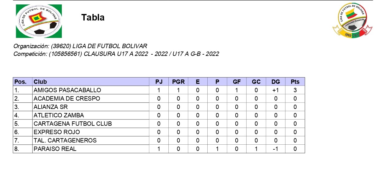 Tablas de pocision U17 B grupo A