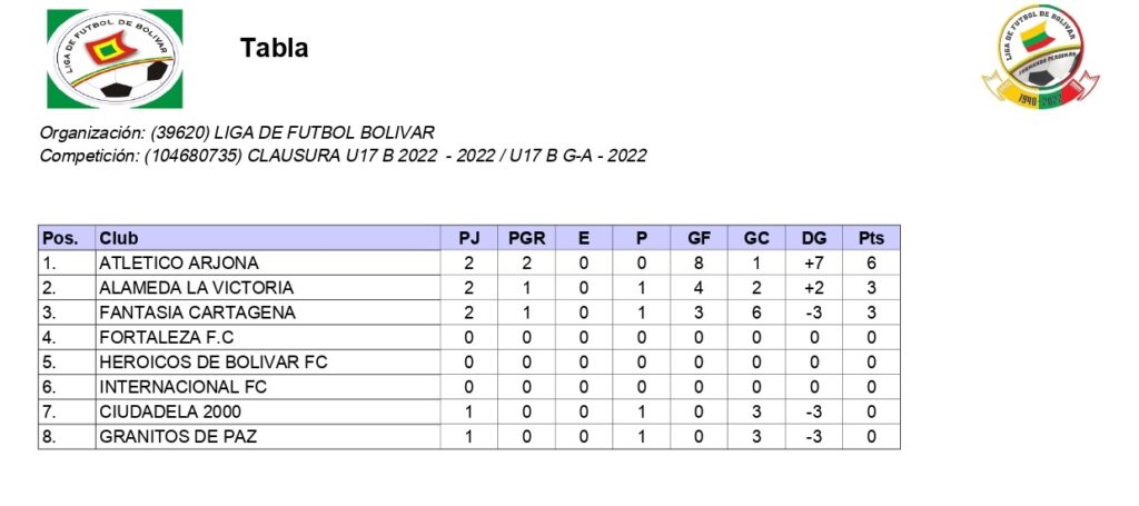 Tablas de pocision U17 B grupo A